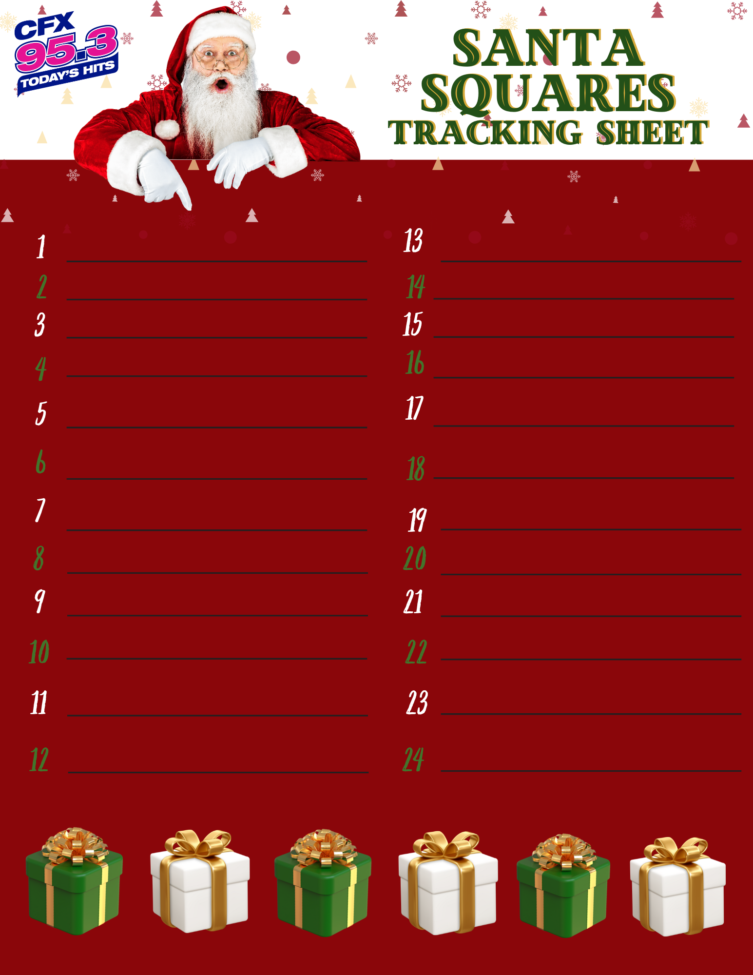 WHEN TO PLAY -Game starts 12/2/24 -Each day M-F at 7:25am & 2:25pm. -We'll play until all Santa Squares are uncovered! -Grand Prize random draw happens when all squares are uncovered